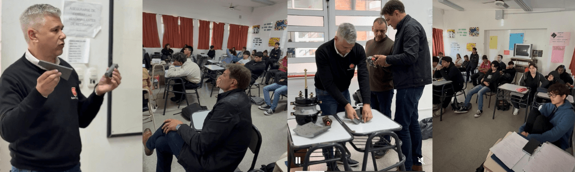 En el marco del Mes de la Industria, el día 30/9 se realizó en la EETP N° 495 Malvinas Argentinas una charla destinada a los alumnos con la participación de dos empresarios del sector metalúrgico local: Ricardo Scalenghe, de RG Frenos, y Mauricio Rizzotto, de Poleas RP.